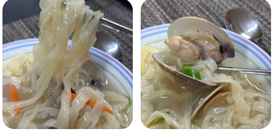 • 손반죽의 쫄깃함: 기계가 아닌 사장님의 손으로 직접 치대고 숙성시킨 반죽은 두께가 불규칙하지만 그 덕분에 쫄깃함과 부드러움이 살아있습니다. 투박하지만 정성이 가득한 면발은 든든한 포만감을 선사합니다.
