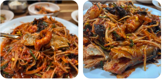 - 감칠맛 도는 매콤 양념: 단순히 맵기만 한 것이 아니라, 고춧가루, 마늘, 각종 채소 등 정성이 들어간 양념은 깊은 감칠맛을 품고 있습니다. 매콤함이 입안을 자극하면서도 깔끔하게 마무리되어 계속해서 젓가락을 부릅니다.