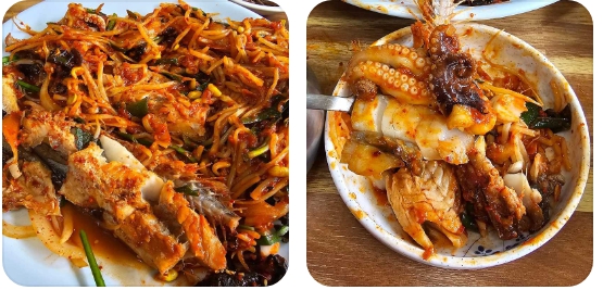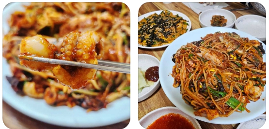 - 탱글탱글한 주꾸미: 함께 들어간 주꾸미는 탱글탱글하고 쫄깃한 식감으로, 북어와는 또 다른 재미를 선사합니다. 해산물 특유의 시원한 감칠맛이 매콤한 양념과 어우러져 중독성 강한 맛을 만들어냅니다.
