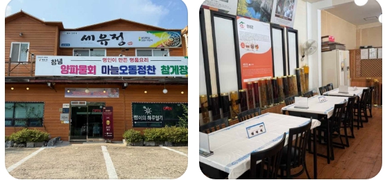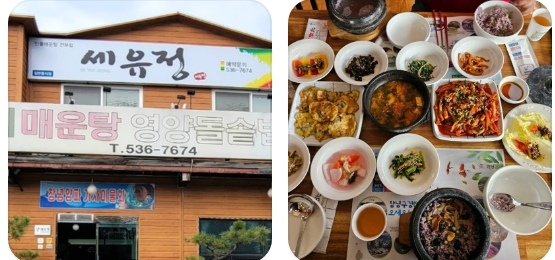 [세유정]은 부곡 온천로에 위치하여, 온천욕 후 허기진 배를 채우기 위해 찾는 손님들이 많습니다. 깔끔하고 정갈한 분위기 속에서 편안하게 식사를 즐길 수 있으며, 특히 다양한 해산물 요리와 창녕 특산물을 활용한 메뉴 덕분에 지역 주민과 외지 관광객 모두에게 인기가 높습니다.