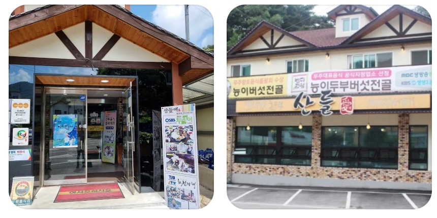 SBS [생방송 투데이 3892회] <외국인의 밥상> 코너를 통해 무주 대표 건강 맛집으로 소개된 [산들애]는, 청정한 버섯과 산나물을 활용하여 깊고 진한 버섯전골 한 상을 선보이는 곳입니다. 한국의 맑은 자연과 건강한 식재료, 그리고 정성이 담긴 시골 인심이 어우러진 이곳의 밥상은 외국인 오스틴 씨뿐만 아니라 모든 방문객에게 깊은 만족감과 힐링을 선사할 것입니다.