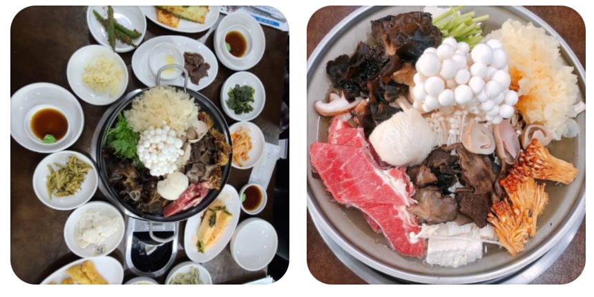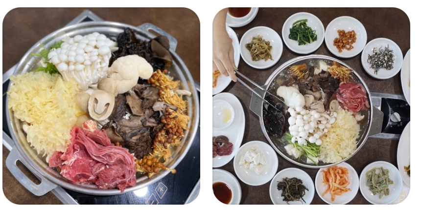 [산들애] 버섯전골의 맛은 무주 덕유산의 맑은 공기와 깨끗한 물에서 자란 신선한 버섯에서 시작됩니다.