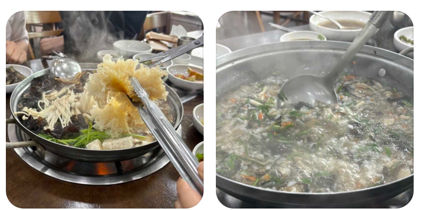 - 진하고 깔끔한 육수: 버섯의 풍미를 해치지 않으면서도 전골의 깊이를 더하기 위해 멸치, 다시마 등 천연 재료와 약재를 넣어 맑고 진하게 우려낸 육수를 사용합니다. 이 육수는 버섯과 만나 시원하면서도 깔끔한 맛을 완성합니다.