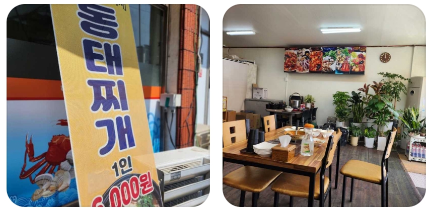 - 동태찌개 정식 (점심특선): 7,000원