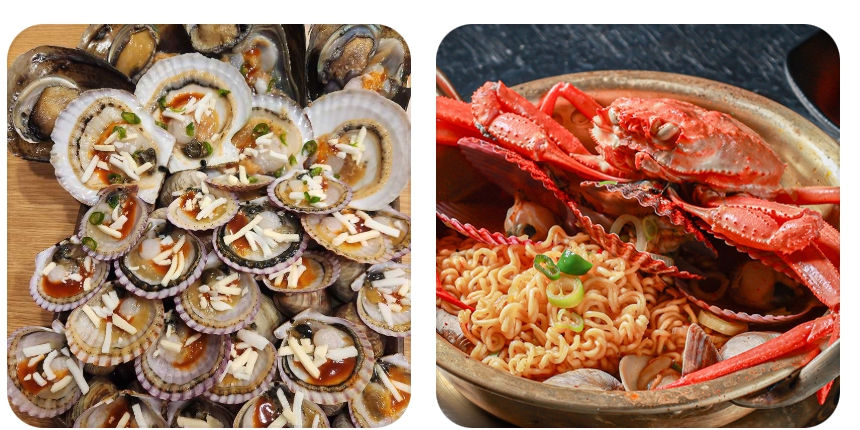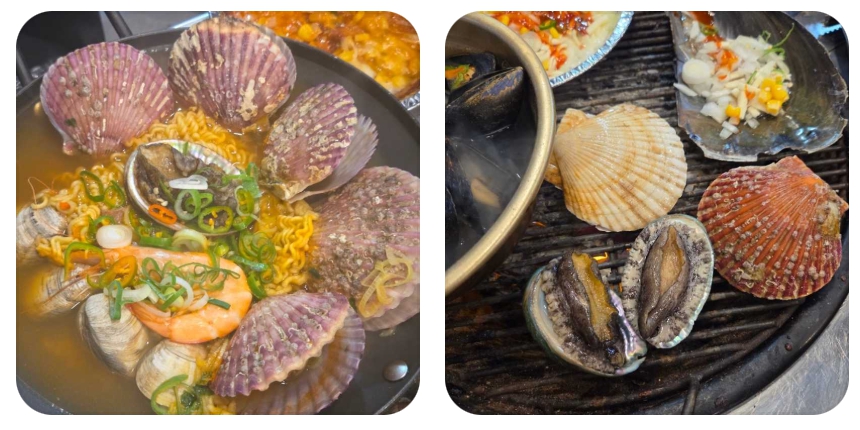 - 다양한 조개의 향연: 무한 리필 메뉴에는 가리비, 키조개, 백합, 홍가리비 등 계절에 따라 가장 신선하고 맛있는 다양한 종류의 조개가 포함됩니다. 단순히 양만 많은 것이 아니라, 여러 종류의 조개를 맛볼 수 있는 즐거움을 선사합니다.