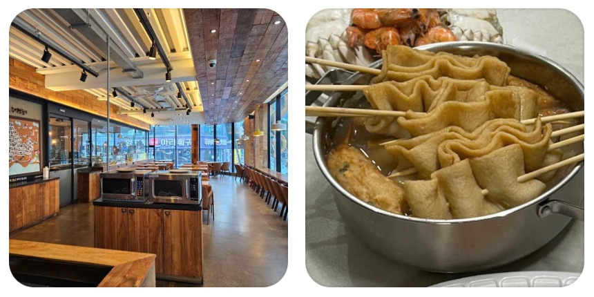 해운대점 매장 내 위치한 취식 공간에서는 갓 만든 어묵 요리를 따뜻하게 즐길 수 있습니다.
