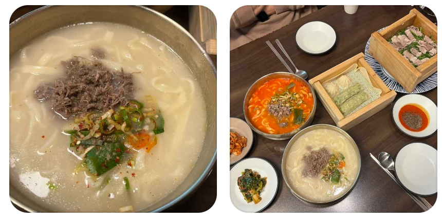 - 얼큰함과 담백함의 균형: 육개장칼국수의 얼큰함과 편백찜의 담백함은 완벽한 맛의 균형을 이룹니다. 이 두 메뉴를 함께 주문하여 나눠 먹으면, 매콤한 맛과 깔끔한 맛을 동시에 즐길 수 있어 만족도가 매우 높습니다.
