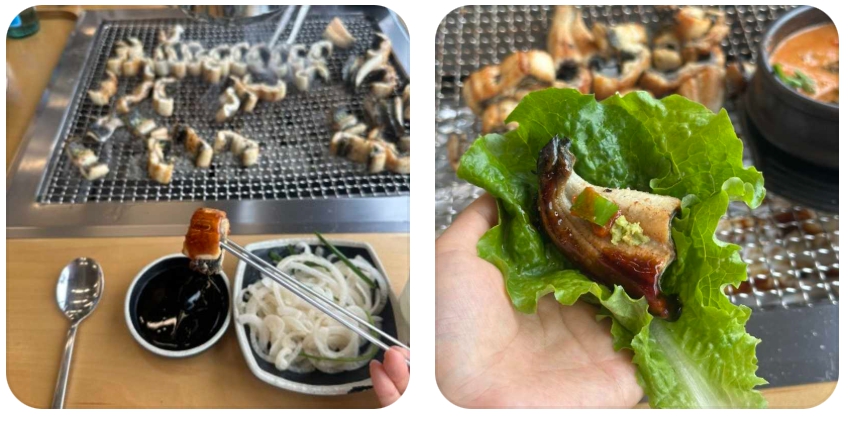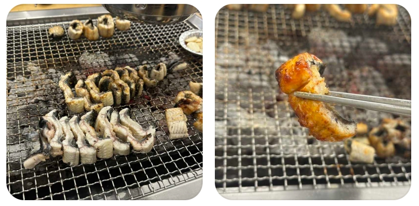특히 조리 과정에서 장어의 두께감은 식감을 결정짓는 가장 중요한 요소인데, 이곳의 장어는 한 입 크기로 잘랐을 때 입안 가득 차는 볼륨감을 자랑합니다. 씹을수록 올라오는 은은한 단맛과 고소함은 별도의 양념 없이 소금만 살짝 찍었을 때 그 진가를 발휘하며, 생강채와 데리야키 소스를 곁들이면 장어 특유의 기름진 맛을 잡아주어 마지막 한 점까지 물리지 않고 즐길 수 있습니다. 또한, 9,000원에 제공되는 장어탕은 이 집의 숨은 병기입니다. 장어 뼈와 머리를 장시간 고아낸 육수에 시래기와 각종 양념을 넣어 끓여낸 이 탕은, 걸쭉하고 진한 국물이 목을 타고 넘어갈 때 전해지는 뜨끈한 기운이 일품입니다. 들깨가루의 구수함이 더해진 국물은 밥 한 공기를 말아 먹기에 부족함이 없으며, 장어 구이와 함께 곁들였을 때 영양학적으로나 맛의 밸런스 면에서 완벽한 조화를 이룹니다.