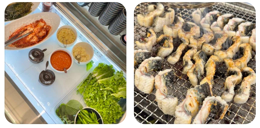 장어를 더욱 맛있게 즐기기 위해서는 굽는 순서에도 요령이 필요합니다. 먼저 껍질 부분을 불판에 닿게 하여 지방을 녹여내고, 살짝 익었을 때 뒤집어 살 부분에 천일염을 뿌려 간을 맞추는 것이 정석입니다. 너무 자주 뒤집기보다는 한 면이 충분히 익었을 때 뒤집어 육즙 손실을 최소화하는 것이 관건입니다. 또한 이곳에서 제공하는 신선한 쌈 채소와 명이나물, 혹은 깻잎장아찌를 적극 활용하면 장어의 풍미를 다채롭게 변주할 수 있습니다. 특히 전라도 특유의 감칠맛 나는 묵은지에 장어를 싸서 먹는 방법은 현지인들이 가장 선호하는 방식 중 하나로, 아삭한 김치의 산미가 장어의 고소함을 한층 끌어올려 줍니다.