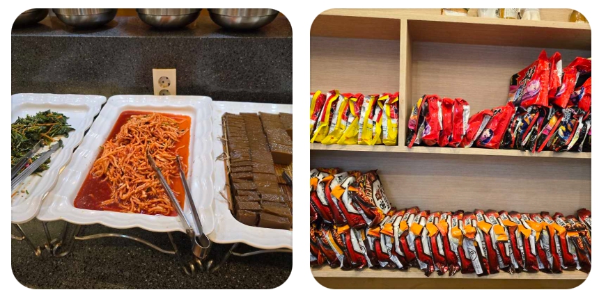 - 든든한 탄수화물의 유혹: 흰밥 외에도 잡곡밥이나 볶음밥 등 다양한 밥 종류를 제공하여 선택의 폭을 넓혔습니다. 탄수화물 러버들을 위한 떡볶이나 잔치국수 등 분식 코너도 비정기적으로 운영되어 직장인들에게 소소한 즐거움을 줍니다.