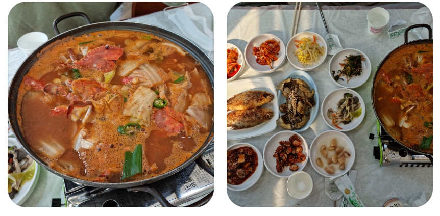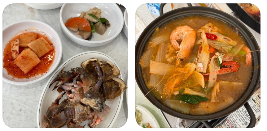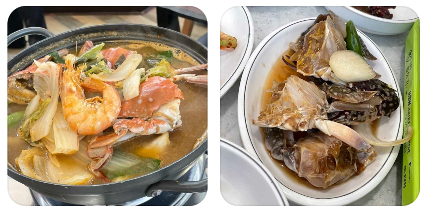 두툼하게 썰어 넣은 무와 배추가 국물을 잔뜩 머금어 입안에서 부드럽게 녹아내리며, 꽃게에서 우러난 시원한 바다 내음이 국물의 깊이를 더해줍니다. 특히 묵은지의 깊은 맛이 해산물의 비린내를 완벽하게 제거하여, 밥 한 공기로는 부족할 정도의 중독성을 자랑합니다. 끓이면 끓일수록 진해지는 국물은 시간이 지남에 따라 다양한 맛의 층위를 보여주며 식객들에게 즐거움을 선사합니다.