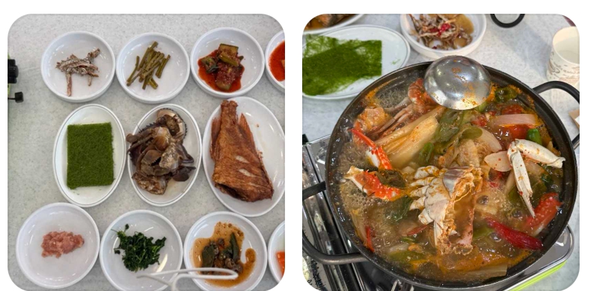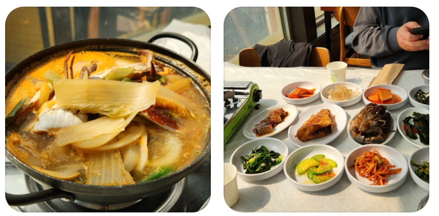 우럭젓국과 함께 반드시 맛봐야 할 메뉴는 바로 게국지입니다. 흔히 알려진 꽃게탕과는 궤를 달리하는 이 음식은, 김장하고 남은 시래기와 배추 겉잎에 게장 국물이나 젓갈을 넣고 버무려 숙성시킨 뒤 끓여 먹던 서민들의 지혜가 담긴 음식입니다. 이곳의 게국지는 잘 익은 김치의 새콤함과 꽃게의 달큰함이 절묘한 조화를 이룹니다.
