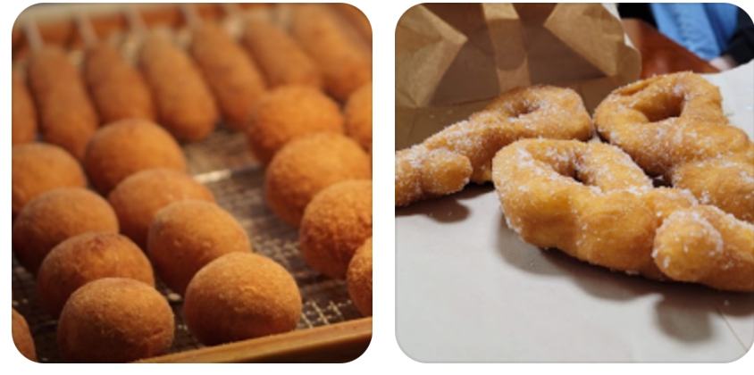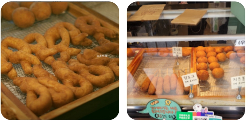 - 팥 도넛과 깨찰 도넛: 쫄깃한 반죽을 활용한 팥 도넛은 달콤한 팥소가 가득 차 있어 든든함을 더하며, 깨찰 도넛은 쫄깃한 식감과 고소한 깨의 풍미가 일품입니다.