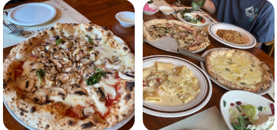 - 나무 장작의 풍미: 화덕에 사용하는 나무 장작이 내는 은은한 불향(스모키함)은 피자 위에 올라간 신선한 토핑의 맛과 어우러져 깊은 풍미를 더합니다.