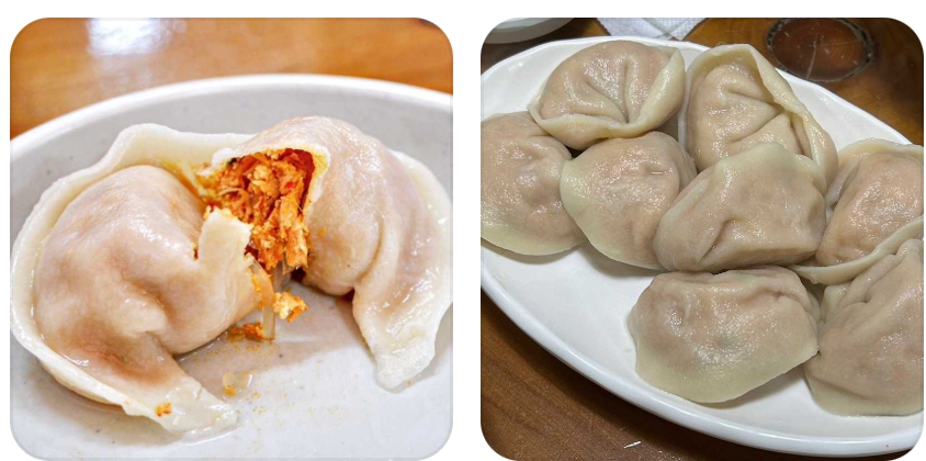 - 정성스러운 모양: 만두 하나하나를 정성스럽게 빚어 만두의 크기가 큼직하고 모양이 예쁩니다. 만두피 속에 꽉 찬 만두소는 푸짐한 인심을 느끼게 해줍니다.