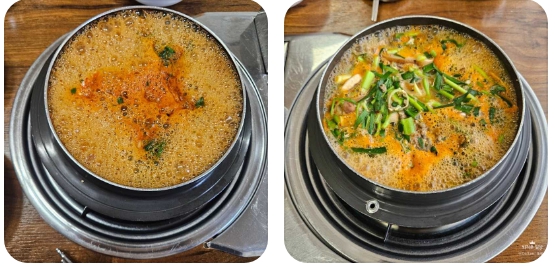 • 추가 재료의 풍성함: 전골식으로 즐기기 때문에 미꾸라지 추가, 민물 새우, 우렁이 살 등을 취향에 따라 추가하며 더욱 풍성하게 즐길 수 있습니다. 특히 민물 새우를 추가하면 국물에 시원하고 칼칼한 감칠맛이 더해져 더욱 특별한 맛을 냅니다.